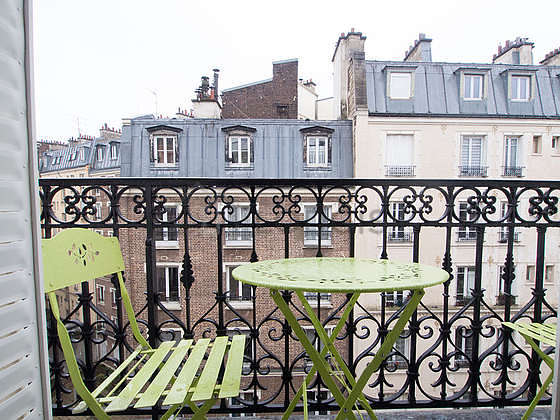 Terraza, la terraza de este apartamento os seducirá. Este espacio exterior muy tanquilo y muy luminoso y equipado con mesa, 2 silla(s) será un verdadero 'plus' para su estancia en París, sobre todo los días soleados.