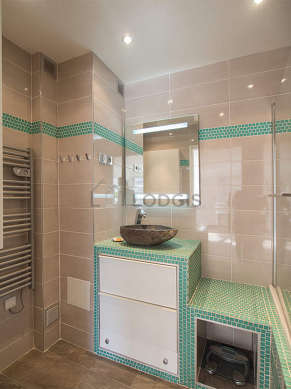 Este apartamento tiene una sala de baño magnífica y clara. Este baño tiene todo lo necesario para su bienestar diario : toallas, armario empotrado, sink, radiador seca-toallas. El WC está separado de la sala del baño y ubicado en un espacio independiente.
