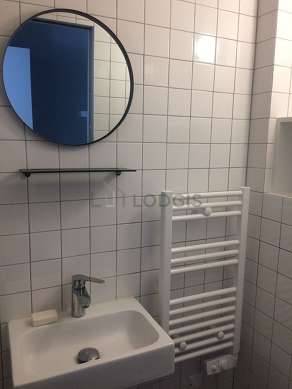 Este apartamento tiene una sala de baño agradable. Este baño tiene todo lo necesario para su bienestar diario : estantería, ducha, airer, sink, radiador seca-toallas, ventilator. El WC está integrado en la sala del baño.