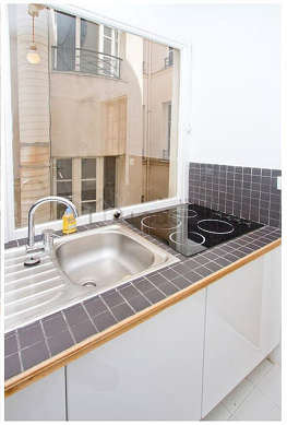 Este apartamento posee una magnífica cocina con azulejo en el sueloy todo el equipamiento necesario para su vida diaria : placas eléctricas, refrigerador, horno micro-ondas, hervidor, cafetera, armario empotrado, vajilla.