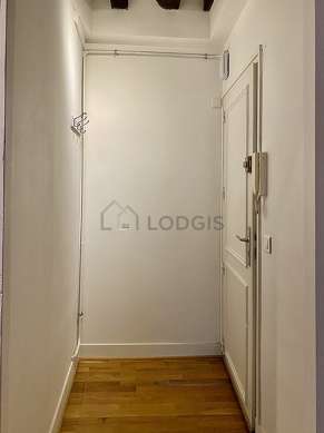 Este apartamento está formado por un salón con parquet en el suelo una vista a la calle. Este salón tranquilo está amueblado y equipado para que su estancia sea agradable : sofá, mesita, viga.