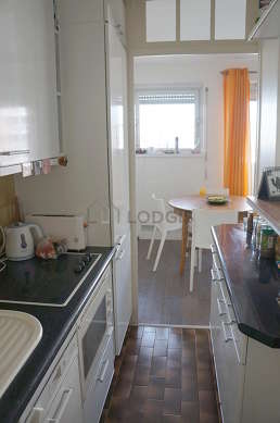 Este apartamento posee una magnífica cocina con azulejo en el sueloy todo el equipamiento esencial para su vida diaria : placas eléctricas, refrigerador, congelador, horno, horno micro-ondas, vajilla.