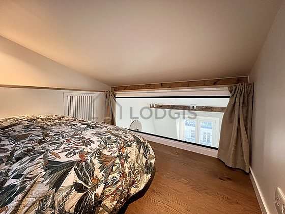 SalónEste apartamento está formado por un salón con parquet en el suelo una vista a la calle. Este salón muy tanquilo está amueblado y equipado para que su estancia sea agradable : televisor, sofá, 1 sillones, mesa, mesita, ropero, estantería, aparador, armario empotrado, viga, 1 silla(s), floor lamp, mirror, set of tables, carpet.