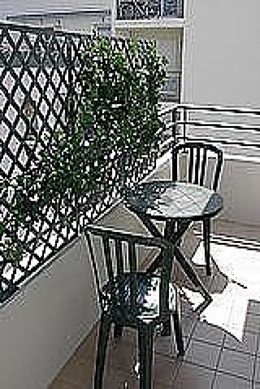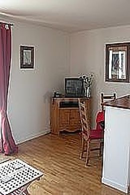 Este apartamento está formado por un salón con parquet en el suelo y ventanas, un balcon y una vista a jardín. Este salón tranquilo está amueblado y equipado para que su estancia sea agradable : televisor, mesa, mesita, ropero, cómoda, 2 silla(s)1 sofá cama.