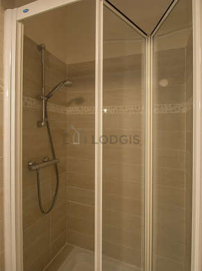 Este apartamento tiene una sala de baño agradable y clara with ventanas. Este baño tiene todo lo necesario para su bienestar diario : toallas, armario empotrado, ducha, sink. El WC está separado de la sala del baño y ubicado en un espacio independiente.