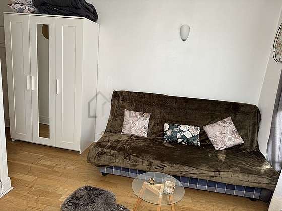 Este apartamento está formado por un salón con parquet en el suelo y ventanas y una vista a al patio. Este salón tranquilo está amueblado y equipado para que su estancia sea agradable : televisor, mesa, ropero, cómoda, 1 silla(s), taburete1 sofá cama.