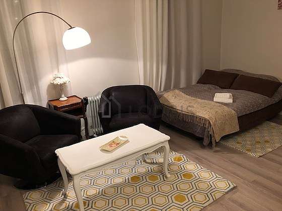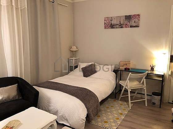 SalónEste apartamento está formado por un salón con parquet en el suelo y ventanas doble acristalamiento. Este salón tranquilo está amueblado y equipado para que su estancia sea agradable : televisor, sábanas, edredones, 2 sillones, mesita, mesa de estudio, armario, cómoda, 1 silla(s)1 cama.