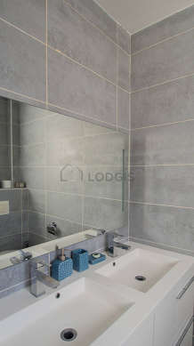 Este apartamento tiene una sala de baño magnífica y muy clara with ventanas. Este baño tiene todo lo necesario para su bienestar diario : toallas, bañera, sink. El WC está integrado en la sala del baño.