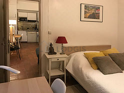SalónEste apartamento está formado por un salón con azulejo en el suelo y ventanas doble acristalamiento y una vista a al patio. Este salón tranquilo está amueblado y equipado para que su estancia sea agradable : televisor, sofá, 1 sillones, mesita, armario, armario empotrado.