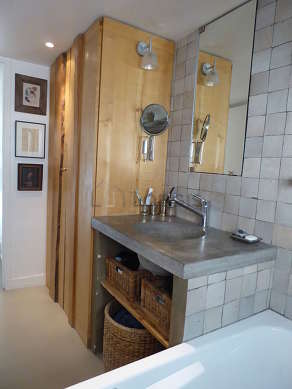 Este loft tiene una sala de baño magnífica y muy clara with ventanas. Este baño tiene todo lo necesario para su bienestar diario : estantería, armario empotrado, bañera, sink. El WC está separado de la sala del baño y ubicado en un espacio independiente.