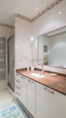Este apartamento tiene una sala de baño agradable y clara. Este baño tiene todo lo necesario para su bienestar diario : toallas, armario empotrado, bañera, ducha, secador de pelo, sink. El WC está separado de la sala del baño y ubicado en un espacio independiente.
