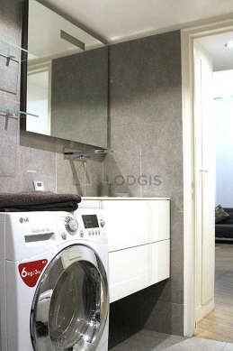 Este apartamento tiene una sala de baño magnífica. Este baño tiene todo lo necesario para su bienestar diario : toallas, armario, armario empotrado, ducha, secador de pelo, sink, radiador seca-toallas. El WC está integrado en la sala del baño.