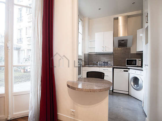 Este apartamento posee una magnífica cocina con azulejo en el sueloy todo el equipamiento indispensable para su vida diaria : placas eléctricas, refrigerador, congelador, horno, micro ondas, campana extractora, tostador, hervidor, cafetera, vajilla, 1 silla(s), bar.