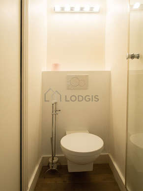 Este apartamento tiene una sala de baño magnífica. Este baño tiene todo lo necesario para su bienestar diario : estantería, armario empotrado, bañera, sink, mirror. El WC está separado de la sala del baño y ubicado en un espacio independiente.