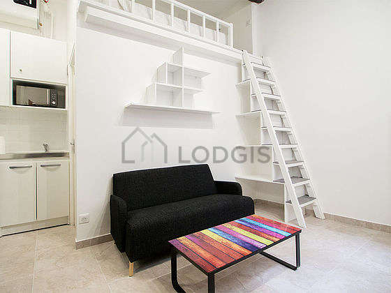 Gracias a una altura del techo, un magnífica altillo ha sido instalado en este apartamento , ofreciéndole un verdadero espacio extra equipada con sábanas, edredones, estantería.