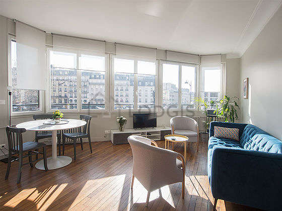 SalónEste apartamento está formado por un salón con parquet en el suelo una vista a la calle. Este salón está amueblado y equipado para que su estancia sea agradable : televisor, sofá, mesa, mesita, cómoda, 1 silla(s).