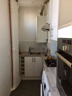 Este apartamento posee una magnífica cocina con azulejo en el sueloy todo el equipamiento necesario para su vida diaria : placas eléctricas, refrigerador, horno, micro ondas, campana extractora, armario, armario empotrado, vajilla, bin.