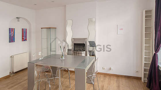 Este apartamento está formado por un salón con parquet en el suelo y ventanas doble acristalamiento. Este salón tranquilo está amueblado y equipado para que su estancia sea agradable : sofá, mesa, 1 silla(s).