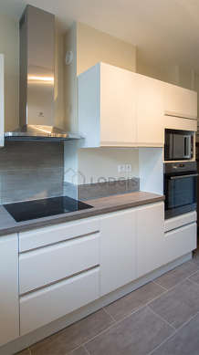 Este apartamento posee una magnífica cocina con azulejo en el sueloy todo el equipamiento esencial para su vida diaria : placas eléctricas, refrigerador, congelador, horno, micro ondas, campana extractora, tostador, hervidor, cafetera, mesa, armario empotrado, vajilla, 2 silla(s).
