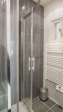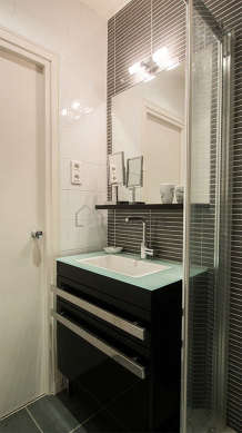 Este apartamento tiene una sala de baño magnífica y muy clara. Este baño tiene todo lo necesario para su bienestar diario : toallas, armario empotrado, ducha, sink, radiador seca-toallas. El WC está separado de la sala del baño y ubicado en un espacio independiente.