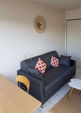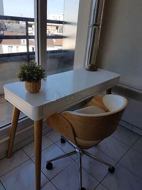 SalónEste apartamento está formado por un salón con azulejo en el suelo y ventanas, un balcon. Este salón tranquilo está amueblado y equipado para que su estancia sea agradable : mesa, mesita, mesa de estudio, estantería, armario empotrado, 2 silla(s)1 sofá cama.