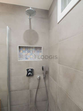 Este apartamento tiene una sala de baño magnífica. Este baño tiene todo lo necesario para su bienestar diario : estantería, armario empotrado, ducha, sink, radiador seca-toallas. El WC está separado de la sala del baño y ubicado en un espacio independiente.
