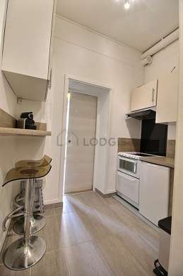 Este apartamento posee una magnífica cocina con azulejo en el sueloy todo el equipamiento esencial para su vida diaria : placas eléctricas, refrigerador, horno, micro ondas, tostador, armario empotrado, vajilla.