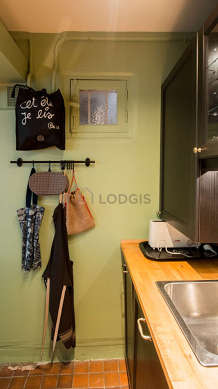 Este apartamento posee una magnífica cocina con terrazo en el sueloy todo el equipamiento esencial para su vida diaria : placas eléctricas, refrigerador, congelador, micro ondas, horno micro-ondas, congelador, campana extractora, tostador, hervidor, cafetera, estantería, armario empotrado, vajilla.