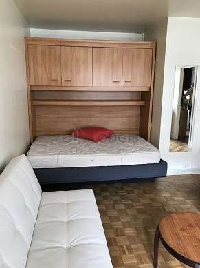 SalónEste apartamento está formado por un salón con parquet en el suelo y ventanas. Este salón está amueblado y equipado para que su estancia sea agradable : televisor, edredones, sofá, 1 sillones, mesa, ropero, estantería, armario, armario empotrado, vajilla, 1 silla(s)1 sofá cama.