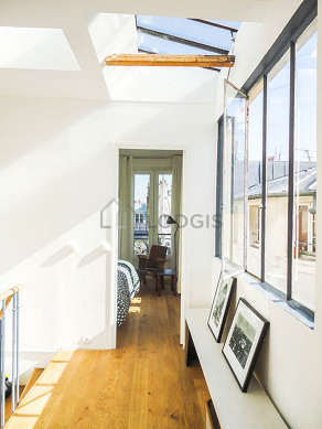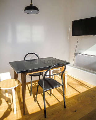 SalónEste apartamento está formado por un salón con parquet en el suelo y ventanas. Este salón está amueblado y equipado para que su estancia sea agradable : televisor, sofá, mesa, armario empotrado, 1 silla(s), taburete.