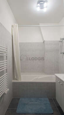 Este apartamento tiene una sala de baño agradable y clara. Este baño tiene todo lo necesario para su bienestar diario : armario empotrado, sink. El WC está separado de la sala del baño y ubicado en un espacio independiente.