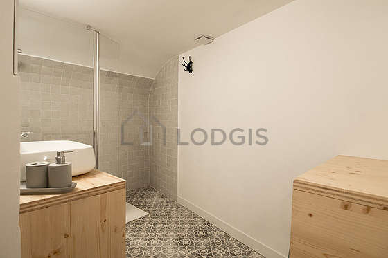 Este apartamento tiene una sala de baño magnífica. Este baño tiene todo lo necesario para su bienestar diario : estantería, armario empotrado, ducha, sink. El WC está separado de la sala del baño y ubicado en un espacio independiente.