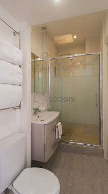 Este apartamento tiene una sala de baño magnífica y clara. Este baño tiene todo lo necesario para su bienestar diario : toallas, ducha, sink. El WC está integrado en la sala del baño.