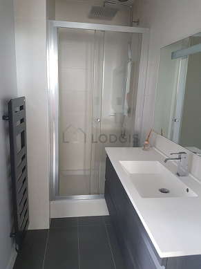 Este apartamento tiene una sala de baño magnífica y muy clara. Este baño tiene todo lo necesario para su bienestar diario : toallas, cómoda, ducha, secador de pelo, sink, sink, radiador seca-toallas. El WC está separado de la sala del baño y ubicado en un espacio independiente.