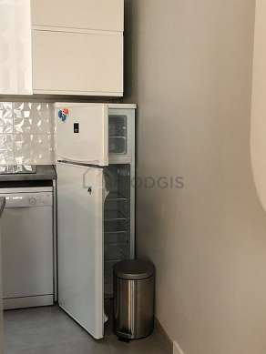 Este apartamento posee una bonito cocina con parquet en el sueloy todo el equipamiento indispensable para su vida diaria : placas eléctricas, refrigerador, congelador, horno, tostador, cafetera, mesa, armario empotrado, vajilla, 1 silla(s), bin.