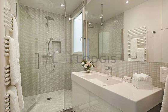 Este dúplex tiene una sala de baño magnífica y clara. Este baño tiene todo lo necesario para su bienestar diario : toallas, armario empotrado, ducha, secador de pelo, sink, radiador seca-toallas. El WC está separado de la sala del baño y ubicado en un espacio independiente.