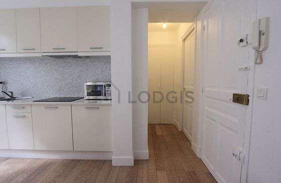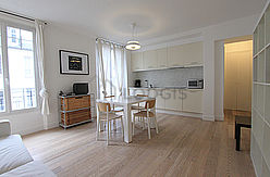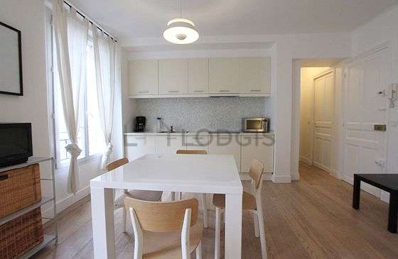 Este apartamento posee una magnífica cocina con parquet en el sueloy todo el equipamiento indispensable para su vida diaria : refrigerador, horno micro-ondas, vajilla, 1 silla(s).