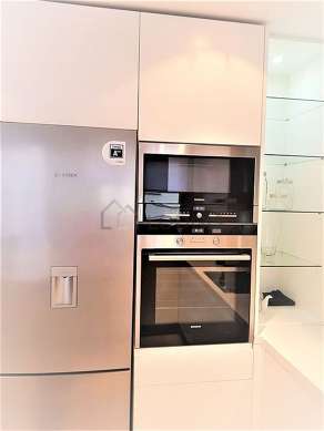 Este apartamento posee una magnífica cocina con parquet en el sueloy todo el equipamiento indispensable para su vida diaria : placas eléctricas, refrigerador, congelador, horno, micro ondas, tostador, mesa, ropero, estantería, armario, armario empotrado, vajilla, 1 silla(s).