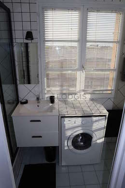 Este apartamento tiene una sala de baño agradable y clara. Este baño tiene todo lo necesario para su bienestar diario : toallas, ducha, sink, mirror, ventilator. El WC está integrado en la sala del baño.
