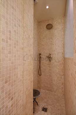 Este apartamento tiene una sala de baño agradable. Este baño tiene todo lo necesario para su bienestar diario : estantería, ducha, sink, radiador seca-toallas. El WC está separado de la sala del baño y ubicado en un espacio independiente.