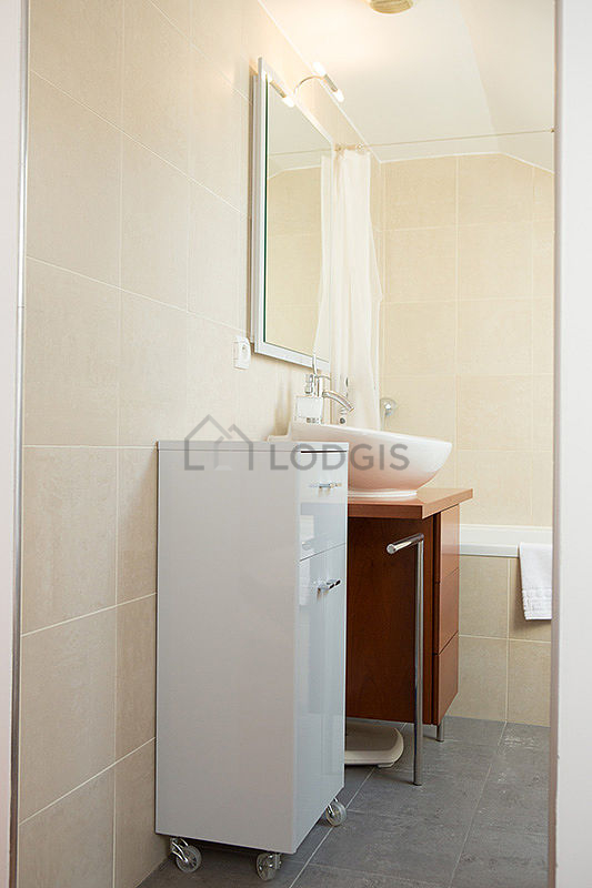 Este dúplex tiene una sala de baño magnífica. Este baño tiene todo lo necesario para su bienestar diario : toallas, armario empotrado, bañera, secador de pelo, sink, sink, radiador seca-toallas. El WC está separado de la sala del baño y ubicado en un espacio independiente.