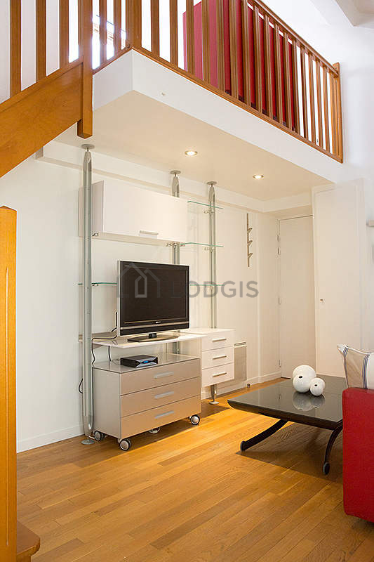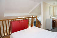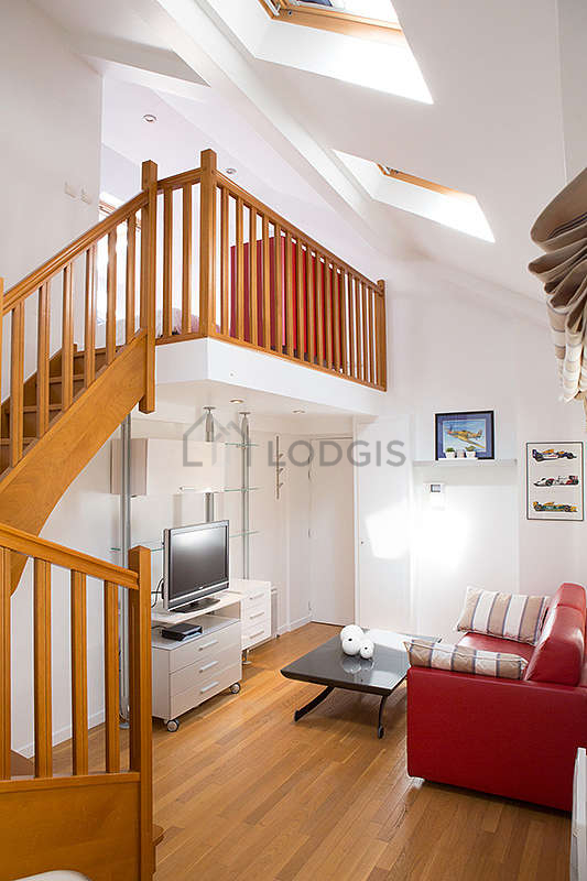 Gracias a una altura del techo, un magnífica altillo ha sido instalado eneste dúplex , ofreciéndole un verdadero espacio extra equipada con sábanas, edredones, sofá, estantería, armario, cómoda, armario empotrado, mesita de noche.