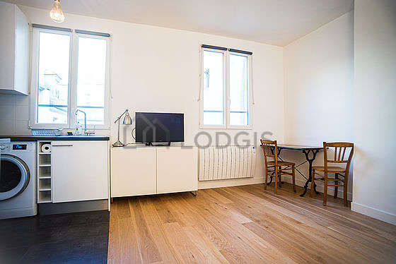 SalónEste apartamento está formado por un salón con parquet en el suelo y ventanas doble acristalamiento. Este salón tranquilo está amueblado y equipado para que su estancia sea agradable : televisor, sábanas, edredones, sofá, mesa, ropero, 2 silla(s)1 sofá cama.