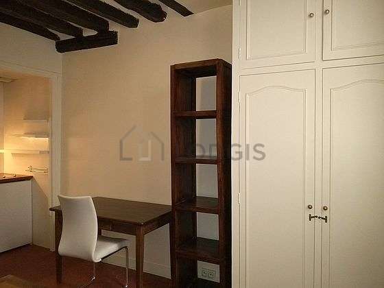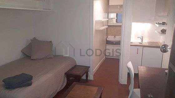 Este apartamento está formado por un salón con azulejo en el suelo y ventanas y una vista a al patio. Este salón muy tanquilo está amueblado y equipado para que su estancia sea agradable : sábanas, edredones, mesa, mesa de estudio, ropero, estantería, armario, armario empotrado, vajilla, 1 silla(s)1 cama.