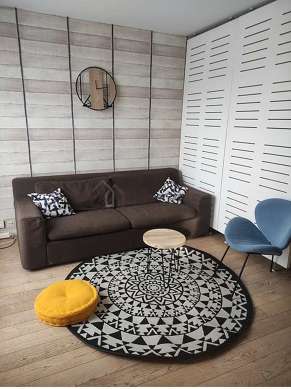 Este apartamento está formado por un salón con parquet en el suelo y ventanas doble acristalamiento. Este salón muy tanquilo está amueblado y equipado para que su estancia sea agradable : sábanas, edredones, sofá, 1 sillones, mesa, ropero, armario, cómoda, armario empotrado, vajilla, 1 silla(s)1 sofá cama, 1 cama.