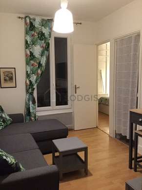 SalónEste apartamento está formado por un salón con parquet en el suelo una vista a al patio. Este salón muy tanquilo está amueblado y equipado para que su estancia sea agradable : televisor, sábanas, edredones, sofá, mesa, estantería, floor lamp, painting1 sofá cama.