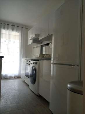 Este apartamento posee una cocinay todo el equipamiento esencial para su vida diaria : placas eléctricas, refrigerador, congelador, horno, micro ondas, campana extractora, tostador, hervidor, cafetera, armario empotrado, vajilla.