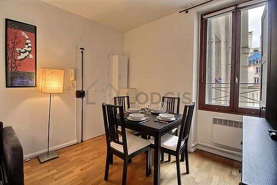 Este apartamento está formado por un salón con parquet en el suelo y ventanas. Este salón muy tanquilo está amueblado y equipado para que su estancia sea agradable : televisor, sábanas, edredones, sofá, mesa, cómoda, vajilla, 1 silla(s)1 sofá cama.
