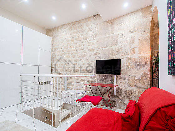 Este apartamento está formado por un salón con azulejo en el suelo y ventanas y una vista a al patio. Este salón muy tanquilo está amueblado y equipado para que su estancia sea agradable : televisor, sofá, mesa, mesa de estudio, estantería, armario empotrado, vajilla, 1 silla(s)1 sofá cama.