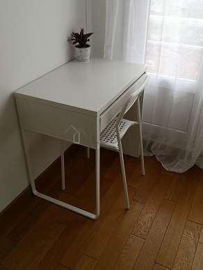 Este apartamento posee una magnífica cocina con parquet en el sueloy todo el equipamiento indispensable para su vida diaria : placas eléctricas, refrigerador, congelador, horno, micro ondas, mesa, armario, vajilla, 1 silla(s).